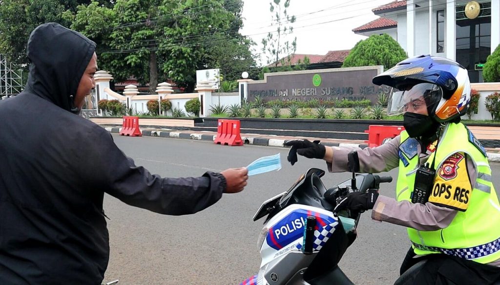 “Dalam patroli sore, masih menemukan sejumlah warga mulai dari pekerja galian kabel, pengguna jalan, hingga pedagang kaki lima yang tak pakai masker” ujar Kapolres Subang AKBP Sumarni