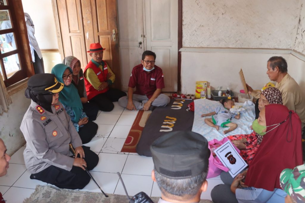 POLRES SUBANG – Kapolres Subang AKBP Sumarni beserta anggotanya menjenguk Anak berusia 2 tahun 2 bulan terbaring di atas kasur di rumahnya yang terletak di Kampung Bojong Gending, Desa Purwadadi, Kecamatan Purwadadi, Kabupaten Subang, Jawa Barat.