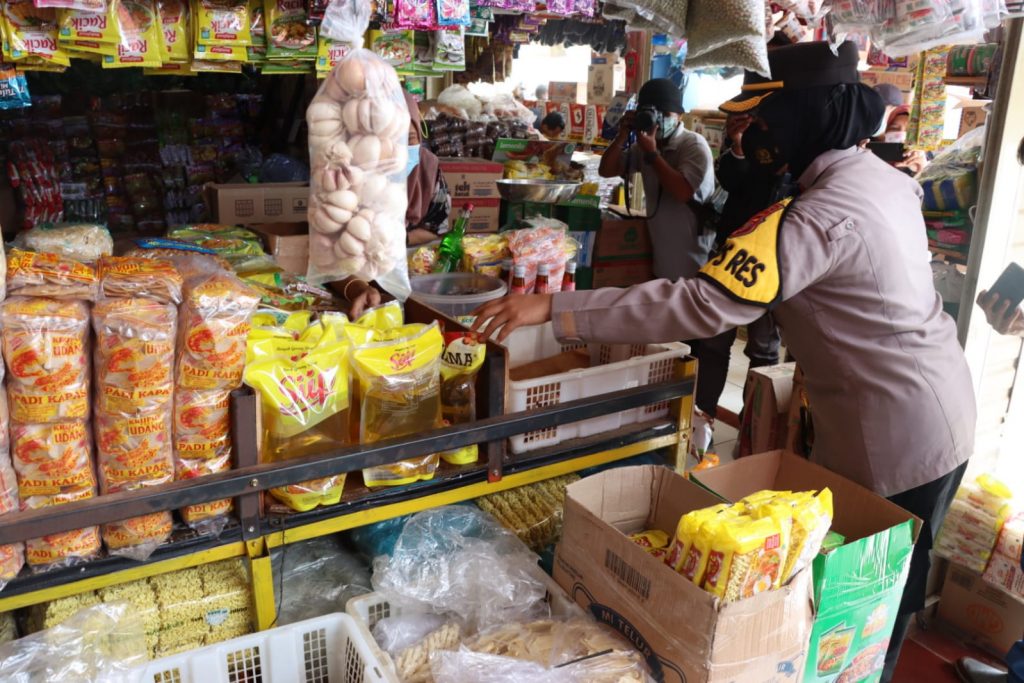 SUBANG – Kapolres Subang AKBP Sumarni memantau stok dan harga minyak goreng di Pasar Purwadadi, Kabupaten Subang, Jawa Barat, Rabu (16/03/2022).