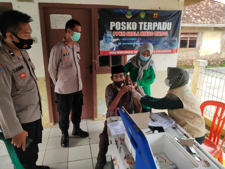 Subang-Pelaksanaan Kegiatan Monitoring Vaksinasi di Desa.Manyingsal dalam rangka Gebyar Vaksin Presisi di wilayah hukum Polsek Pagaden. Atas arahan dan petunjuk Kapolsek Pagaden, KOMPOL H.Senen Ali,S.PD. dan diperintahkan kepada Bhabinkamtibmas Desa.Manyingsal AIPDA Dadang Budiman untuk Melaksanakan Monitoring Vaksinasi di wilayah Desa Manyingsal Kec.Cipunagara Kab.Subang dalam rangka Gebyar Vaksin Presisi di wilayah hukum Polsek Pagaden. Jum’at, (18/2/2022).