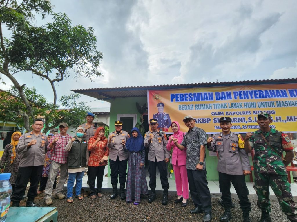 Giat serah terima kunci rumah tersebut dipimpin oleh Kapolres Subang AKBP Sumarni, S.I.K., S.H., M.H., bersama Kapolsek Binong Kades Tambakdahan, Kasat Binmas Polres Subang, Kasi Propam Polres Subang, Personel Polres Subang,